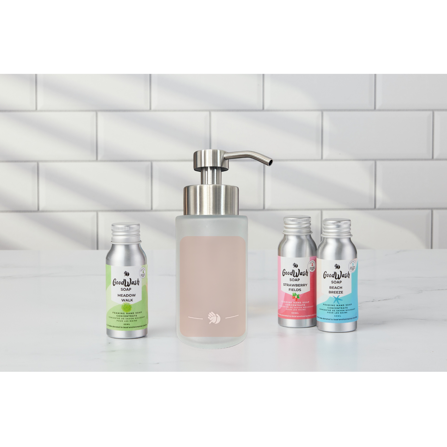 All our products are packaged exclusively in reusable, refillable, and fully recyclable aluminum containers.